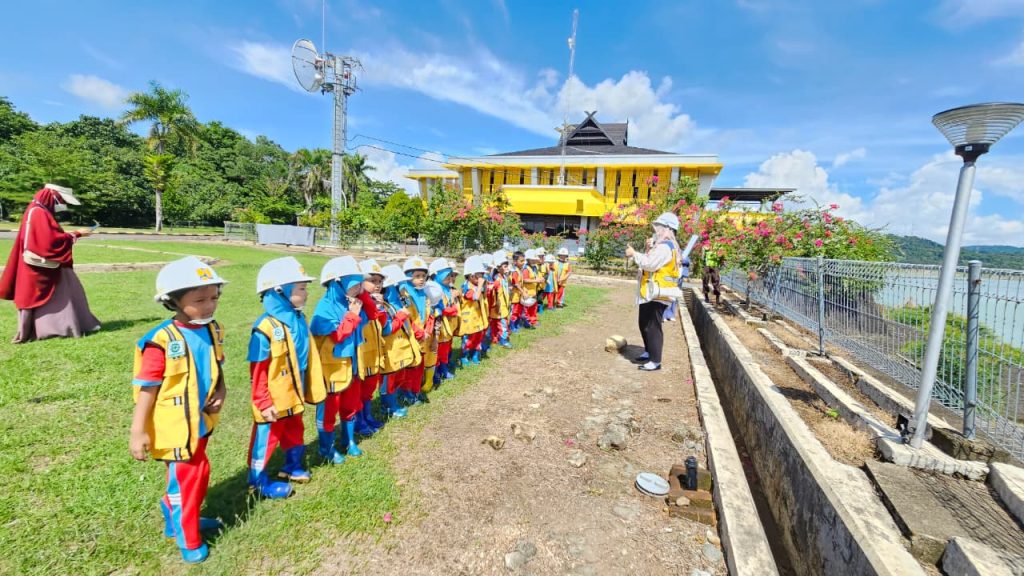 Setibanya di lokasi, wajah-wajah ceria para siswa tampak antusias menyambut pemandangan Dam Bili-Bili yang megah. Mereka disambut oleh petugas dari Dam Office yang dengan sabar dan interaktif menjelaskan proses pengelolaan air. Anak-anak diajak melihat secara langsung bagaimana air sungai dibendung, dialirkan untuk irigasi sawah, dan disalurkan sebagai air baku untuk kebutuhan rumah tangga. Penjelasan yang dikemas dalam bentuk cerita dan permainan membuat materi yang terkesan teknis menjadi sangat menarik. Media visual dan alat peraga sederhana turut digunakan untuk menggambarkan siklus air, dari hujan hingga menjadi air bersih yang mereka gunakan sehari-hari.